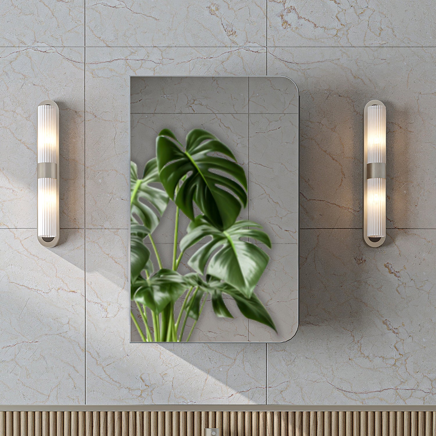 Der Roomart Spiegelschrank fürs Bad kombiniert Badezimmerspiegel und Aufbewahrungsschrank in einem Möbelstück und sorgt für strukturierte Ordnung auf kompakter Fläche.