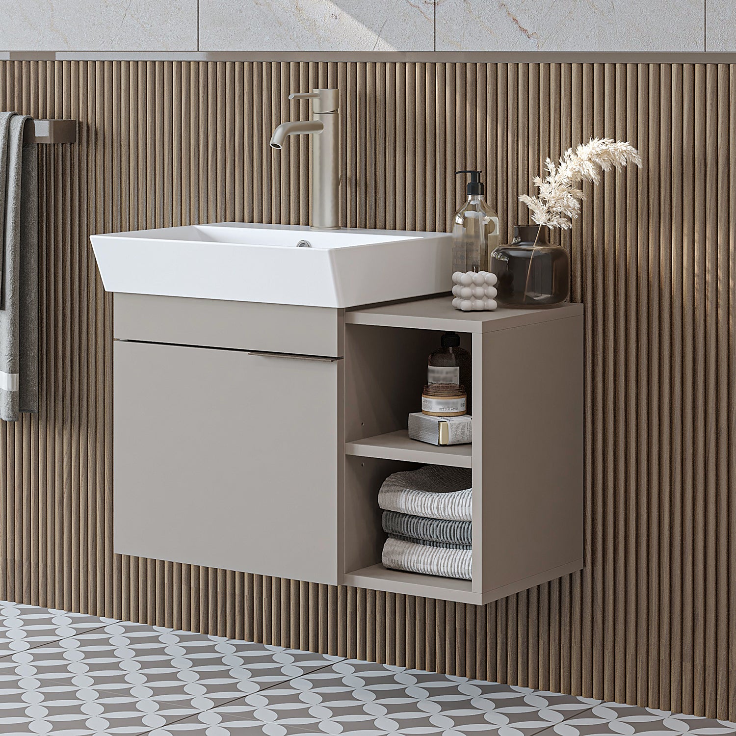 Roomart Badmöbel LYCIA 72 cm – Waschbeckenunterschrank mit Keramik-Waschbecken – Waschtischunterschrank für Badezimmer – Modernes Badmöbel mit Stauraum – 4 Farben