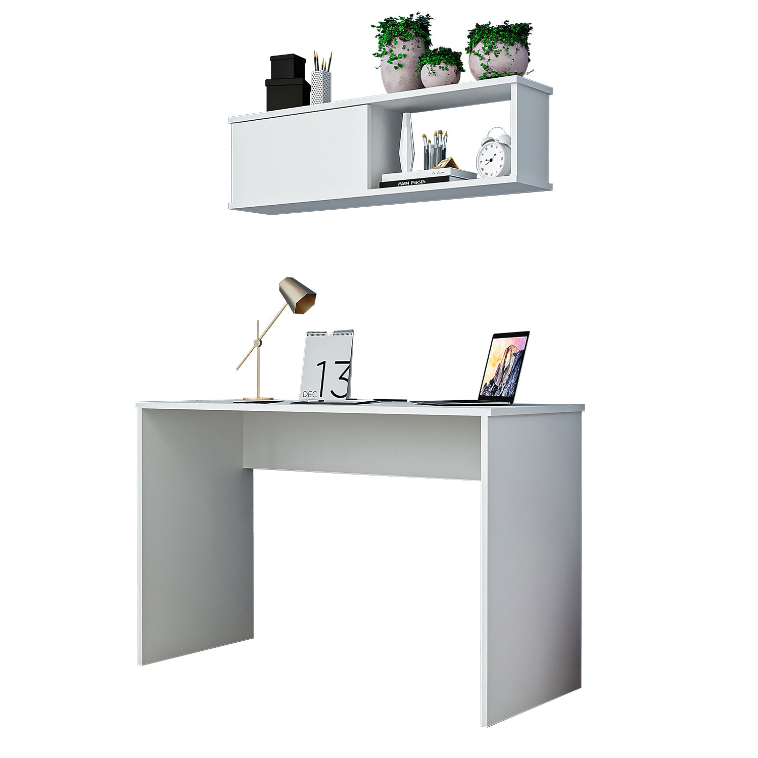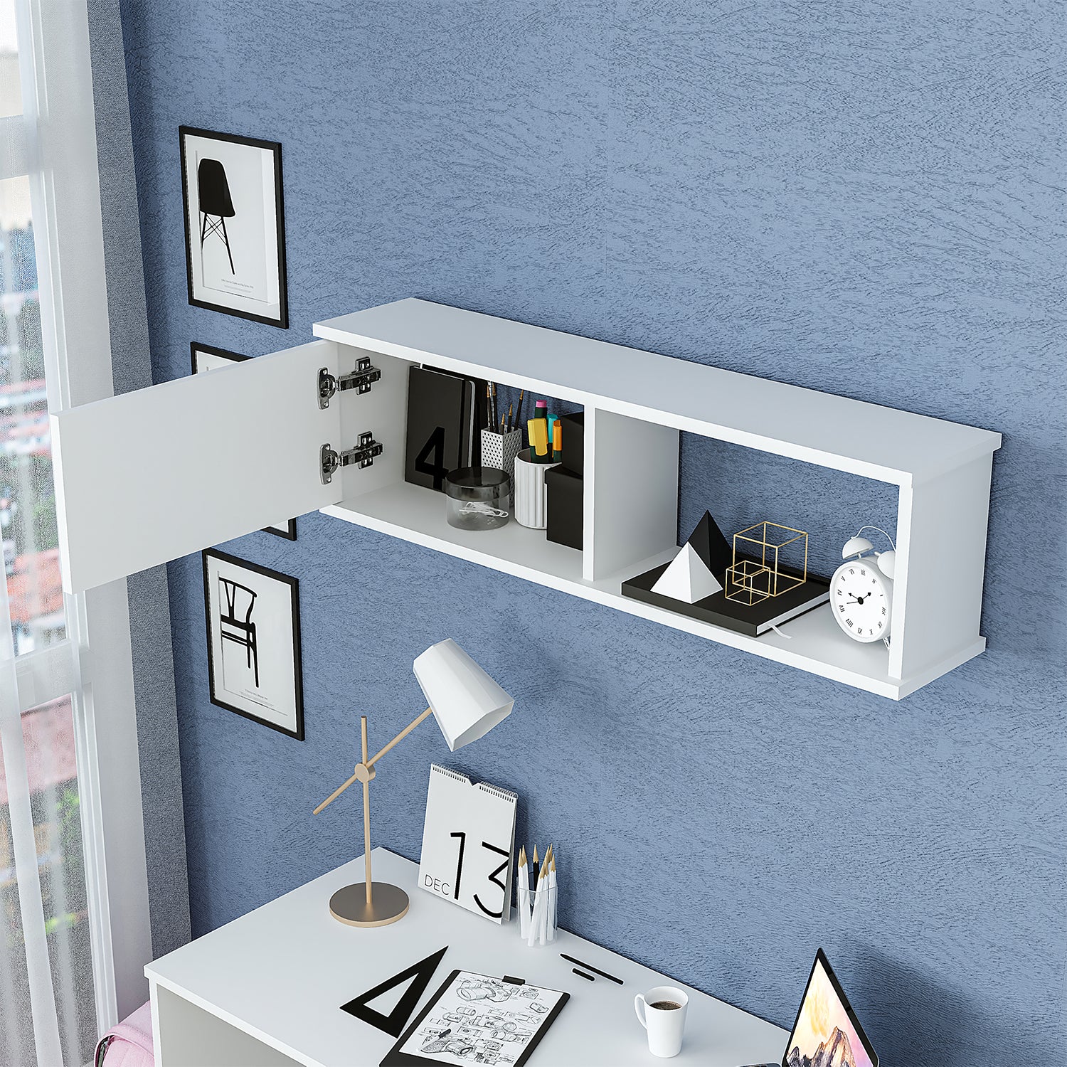Roomart SERA Schreibtisch 120x50x77 cm mit Wandmontierbarem Aufbewahrungsschrank – Regal-Schrankschreibtisch, Laptoptisch & Arbeitstisch – Weiß – Ideal für Kinderzimmer, Home-Office & Arbeitszimmer