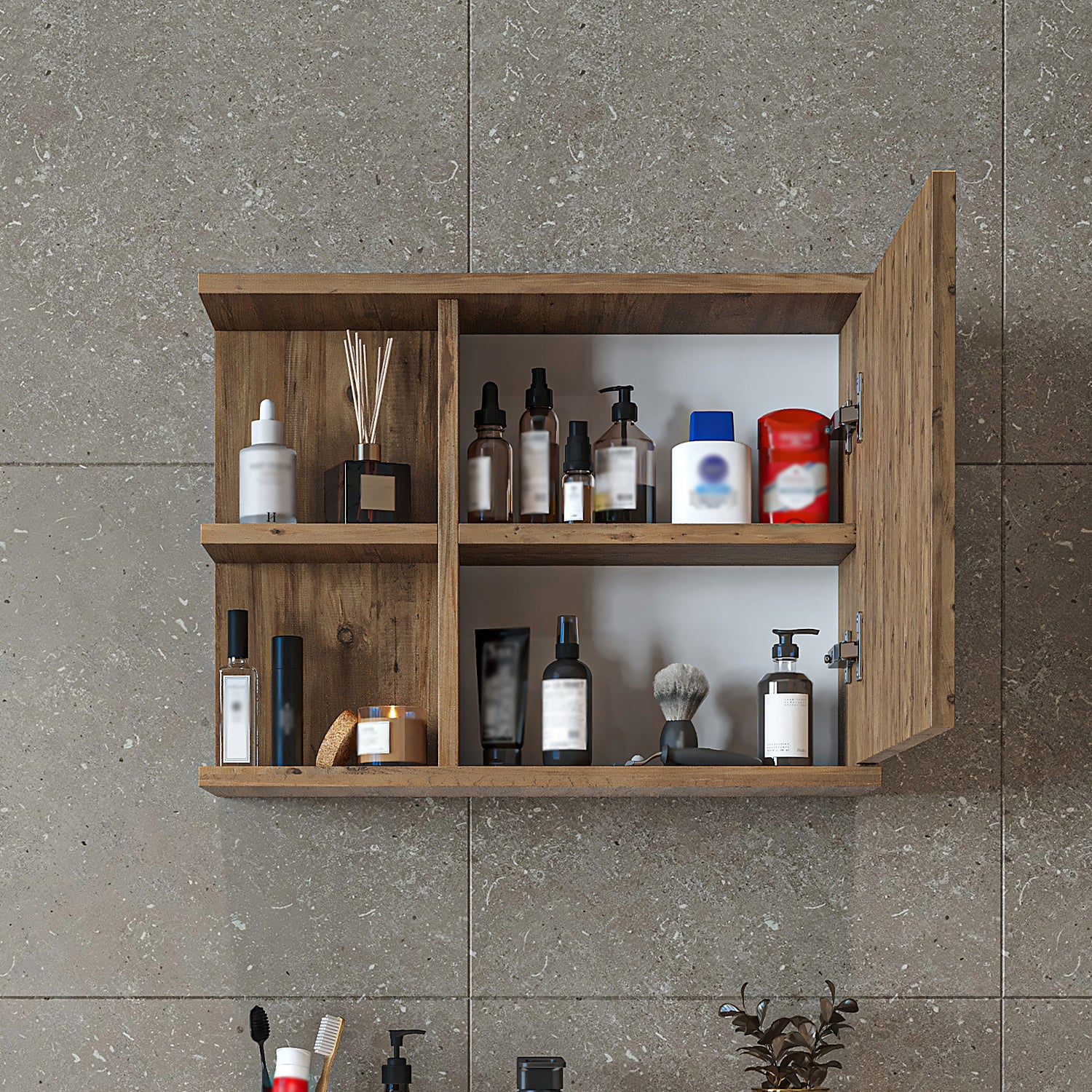 Zeitloses Design mit widerstandsfähiger, melaminharzbeschichteter Oberfläche – ideal für den täglichen Einsatz im Badezimmer.