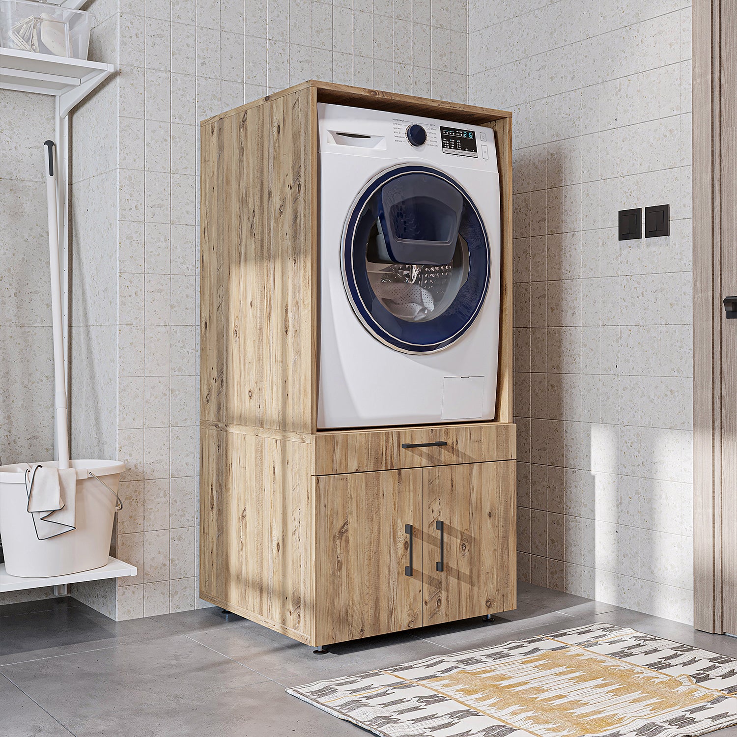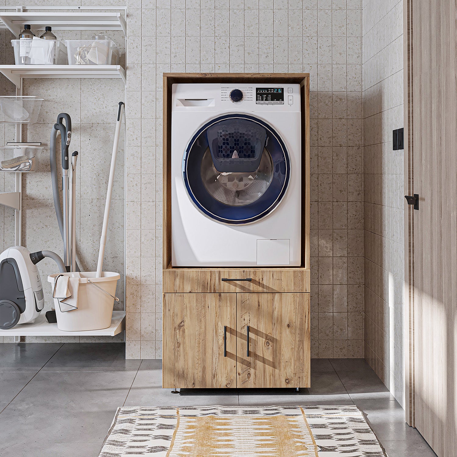 Roomart A3 Waschmaschinenschrank 67 cm – Erhöhung mit Schublade, Ausziehbrett & Stauraum | 3 Farben