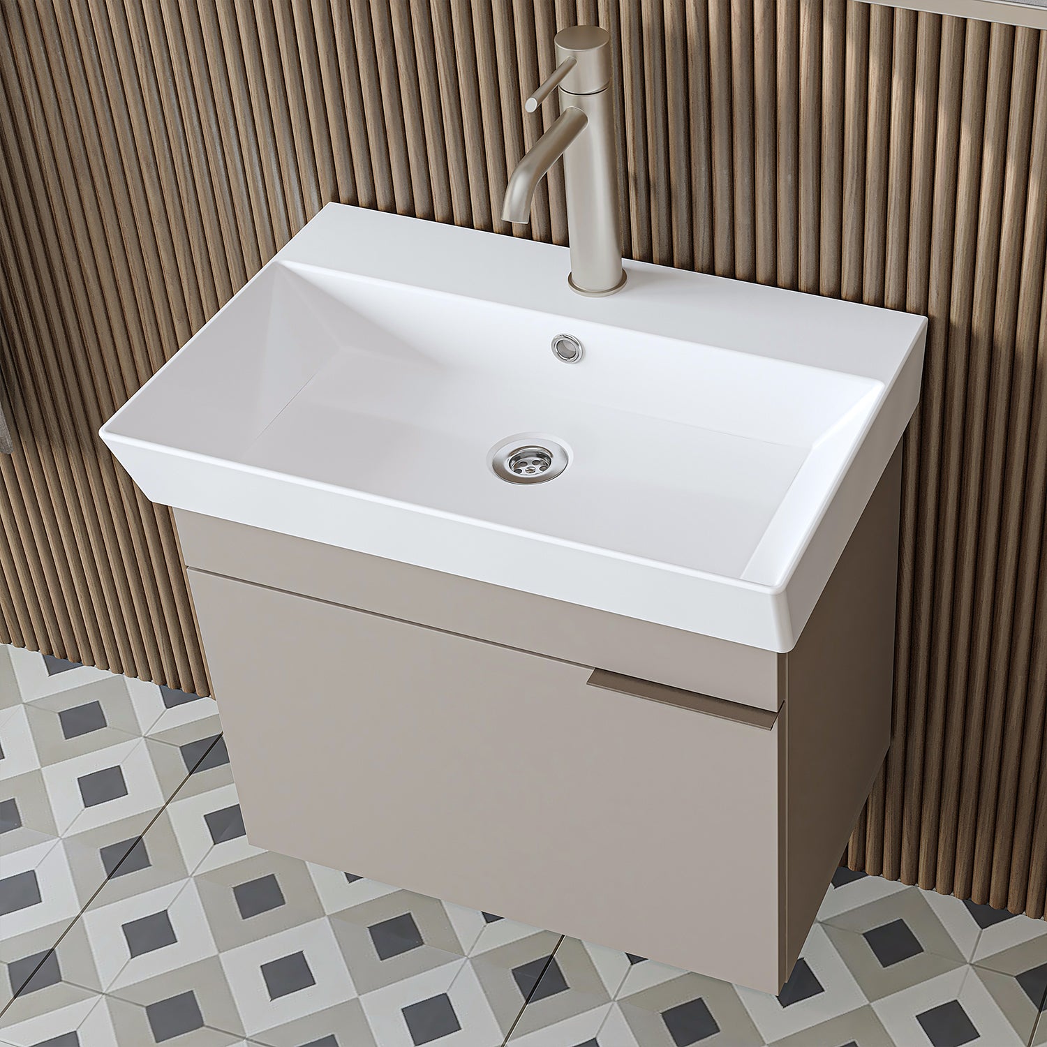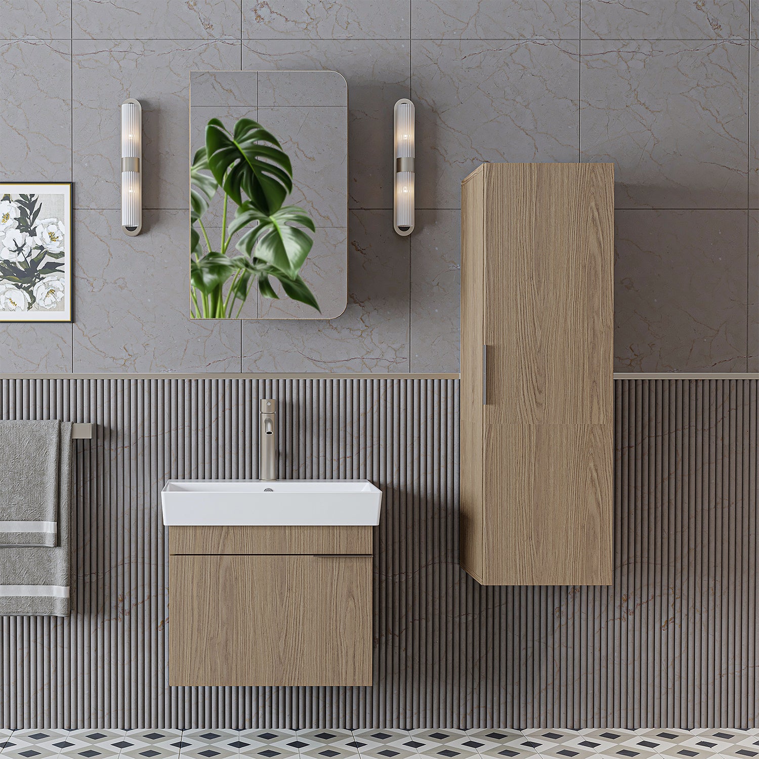 Roomart Badmöbel Set LYCIA 60 cm – 4-teiliges Badezimmermöbel-Set mit Keramik-Waschbecken, Spiegelschrank & Seitenschrank – Badmöbel in 4 Farben
