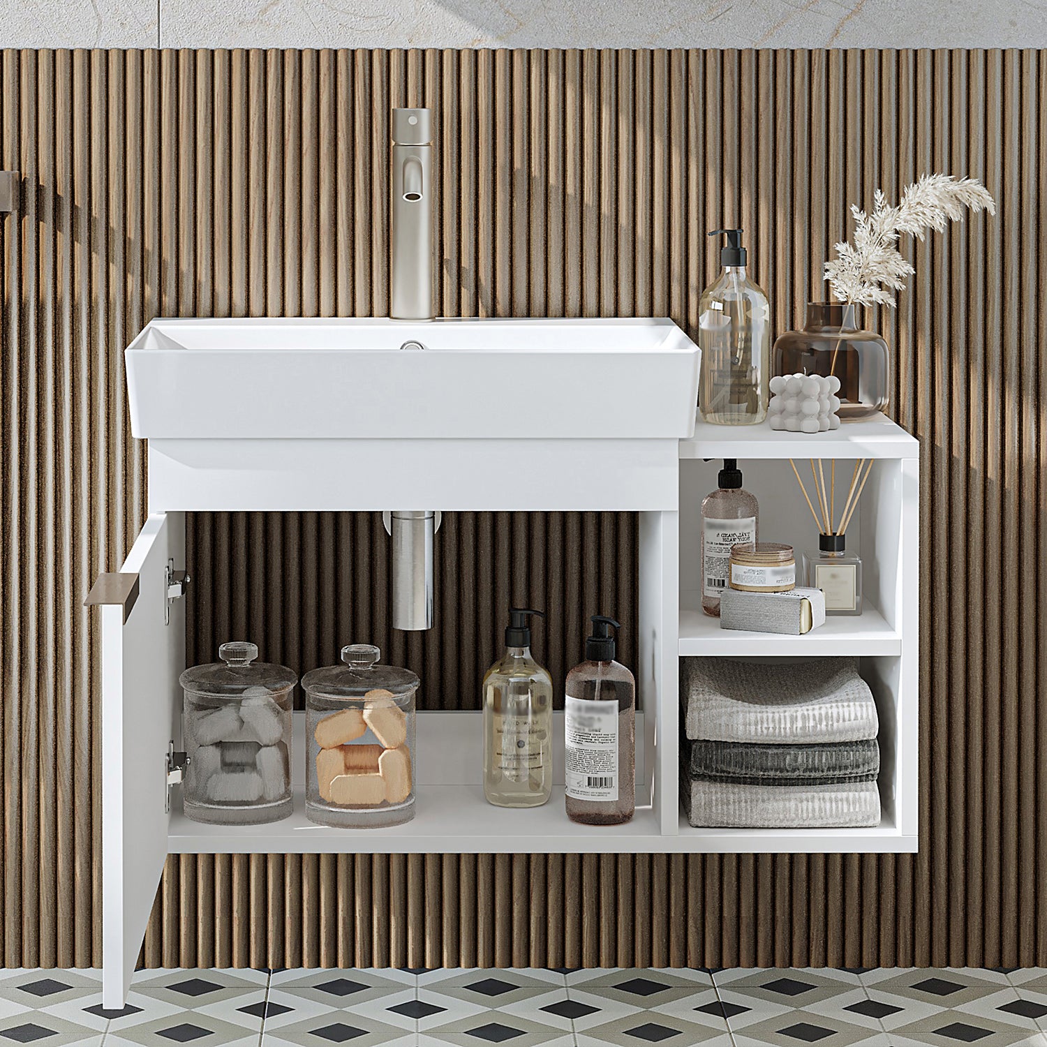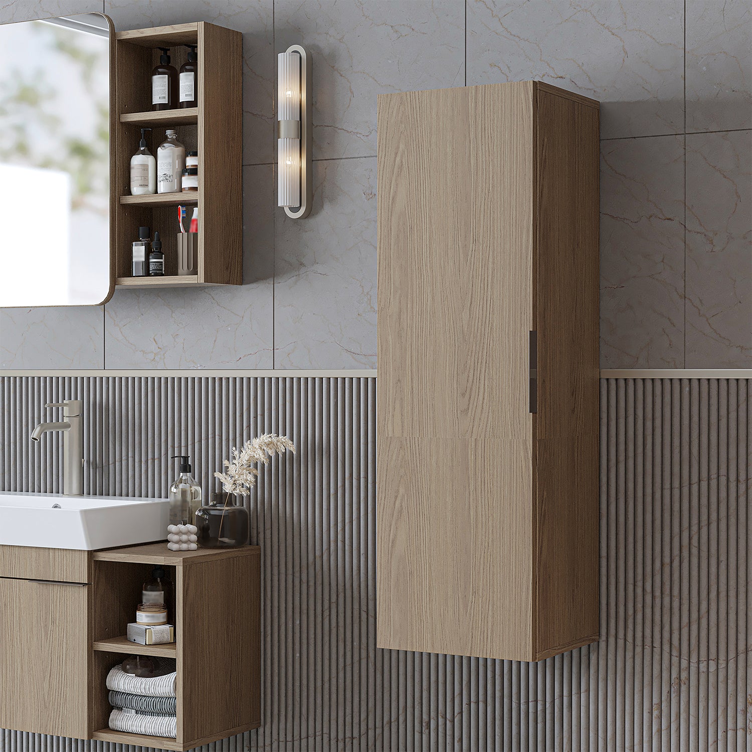 Modernes, zeitloses Design kombiniert mit funktionalem Stauraum – ideal für Badezimmer, Gäste-WC oder kleine Bäder.