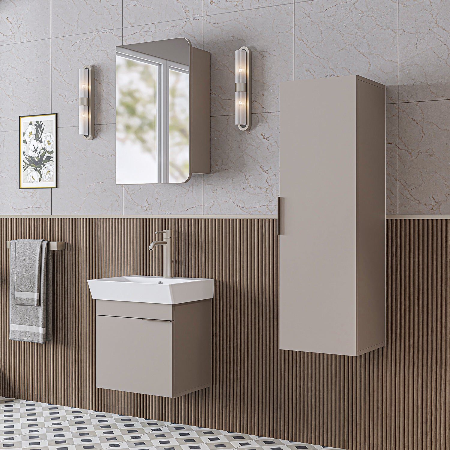 ROOMART Badmöbelset LYCIA 50 cm Unterschrank mit Keramik-Waschbecken, Spiegelschrank, Seitenschrank, Badezimmermöbel in 4 Farben