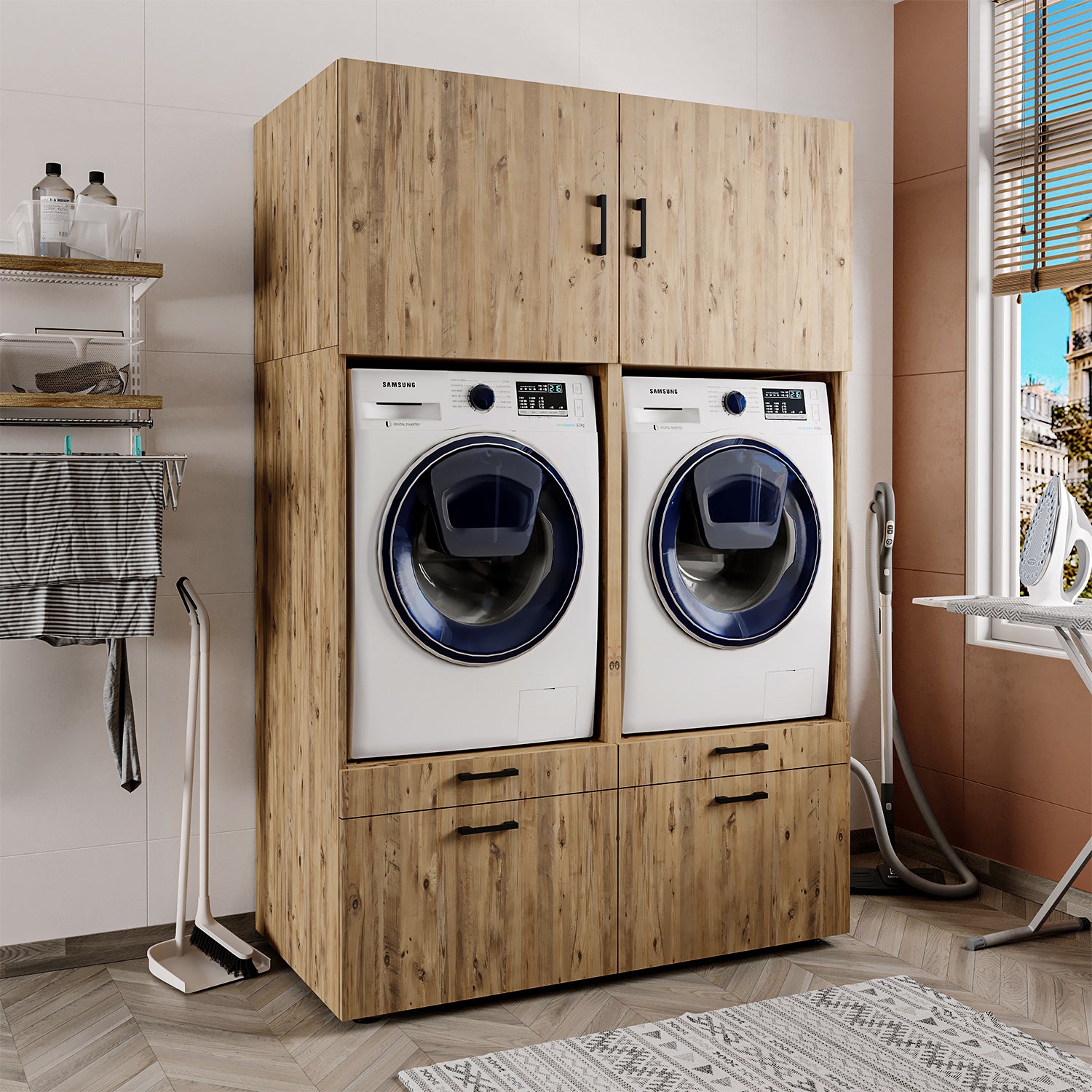 Roomart Waschmachinen Doppelschrrank Überbauschrank (SERIE 2) - 2 Größenoptionen- HBT: 205 x 134 x 66,8 cm, HBT: 240 x 134 x 66,8 cm, in 3 Farben