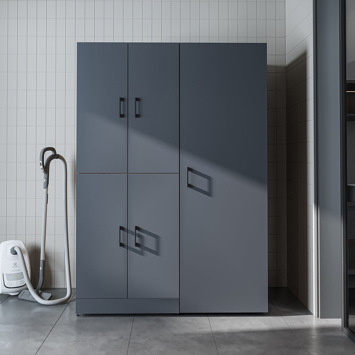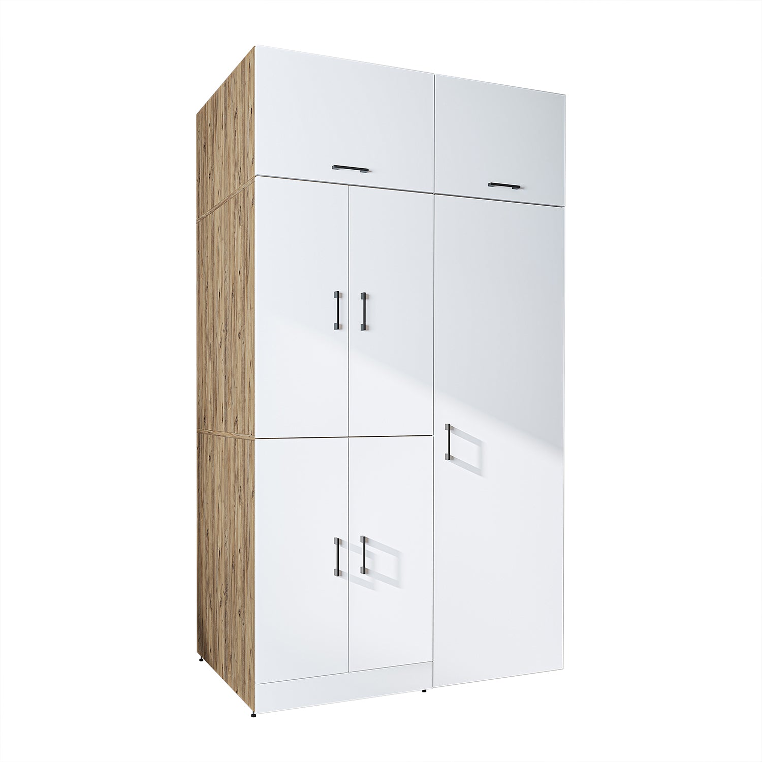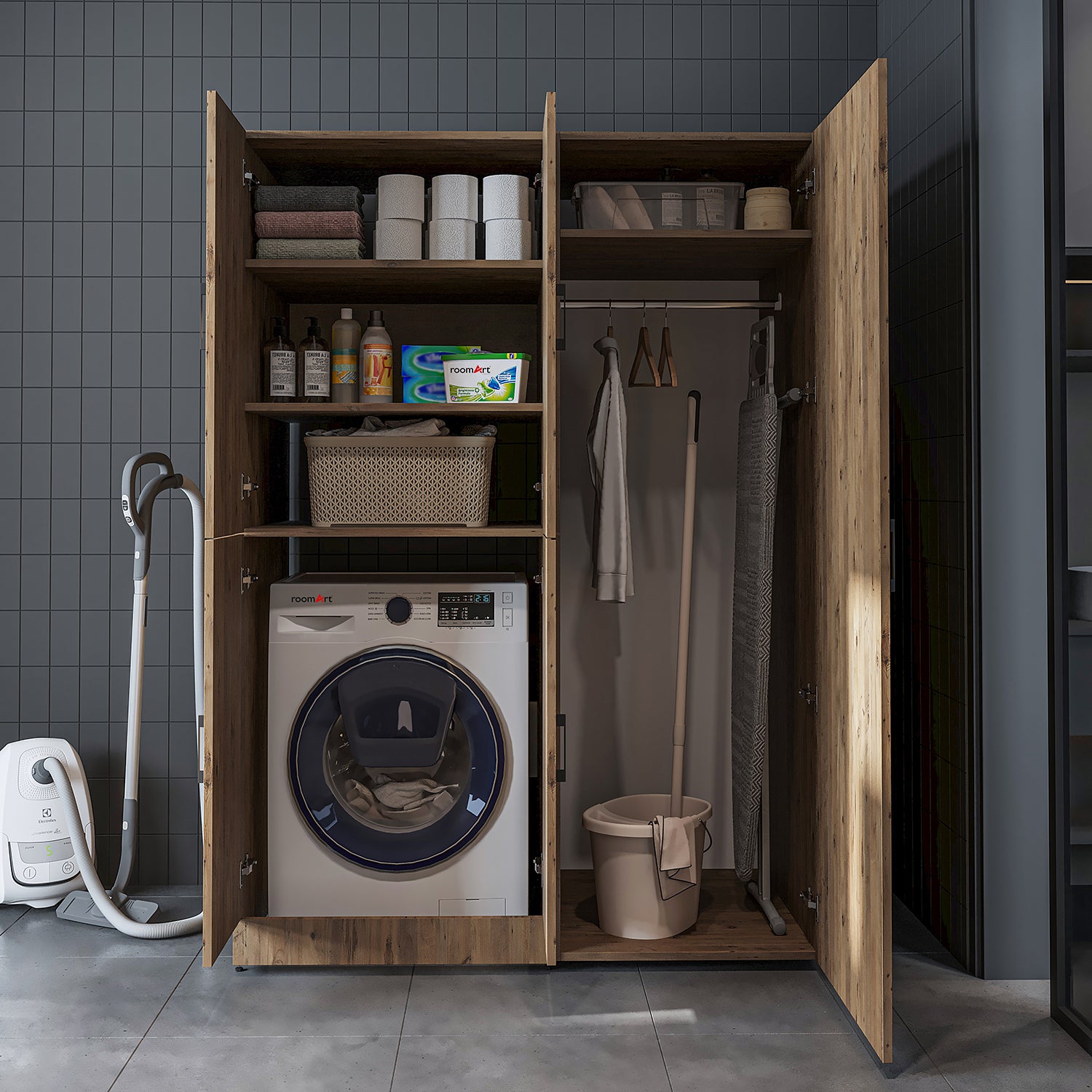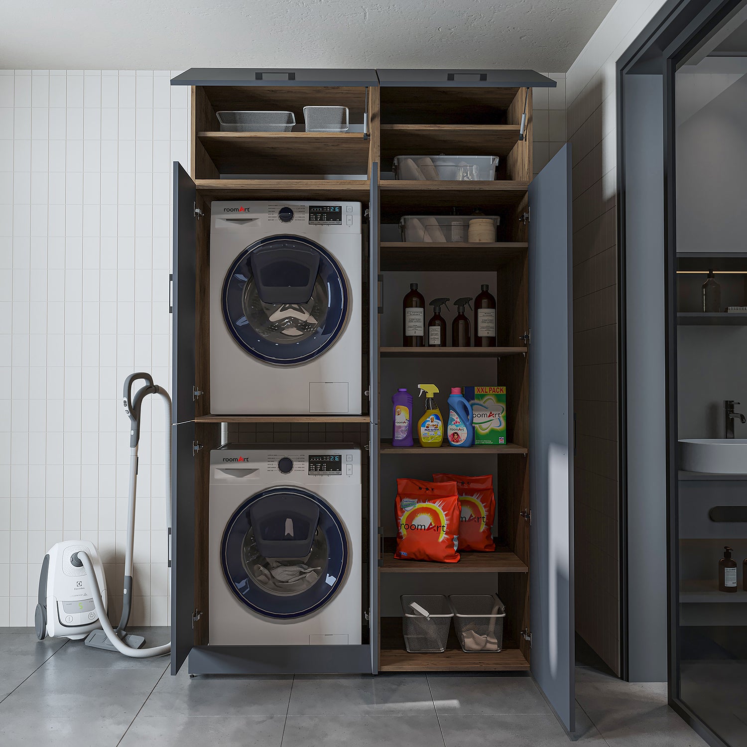 Roomart Waschmaschinenschrank „DORA 130 cm Breit“ für Waschmaschine & Trockner mit Regalböden, in 5 Farben • Weiß • Weiß Eiche • Anthrazit Eiche • Eiche • Schwarz Eiche (Kopie)