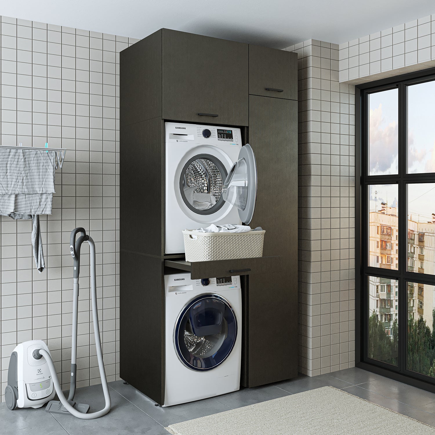 Roomart Waschmaschinenschrank, Trockner auf Waschmaschine • 112 cm breit • In 3 Farben