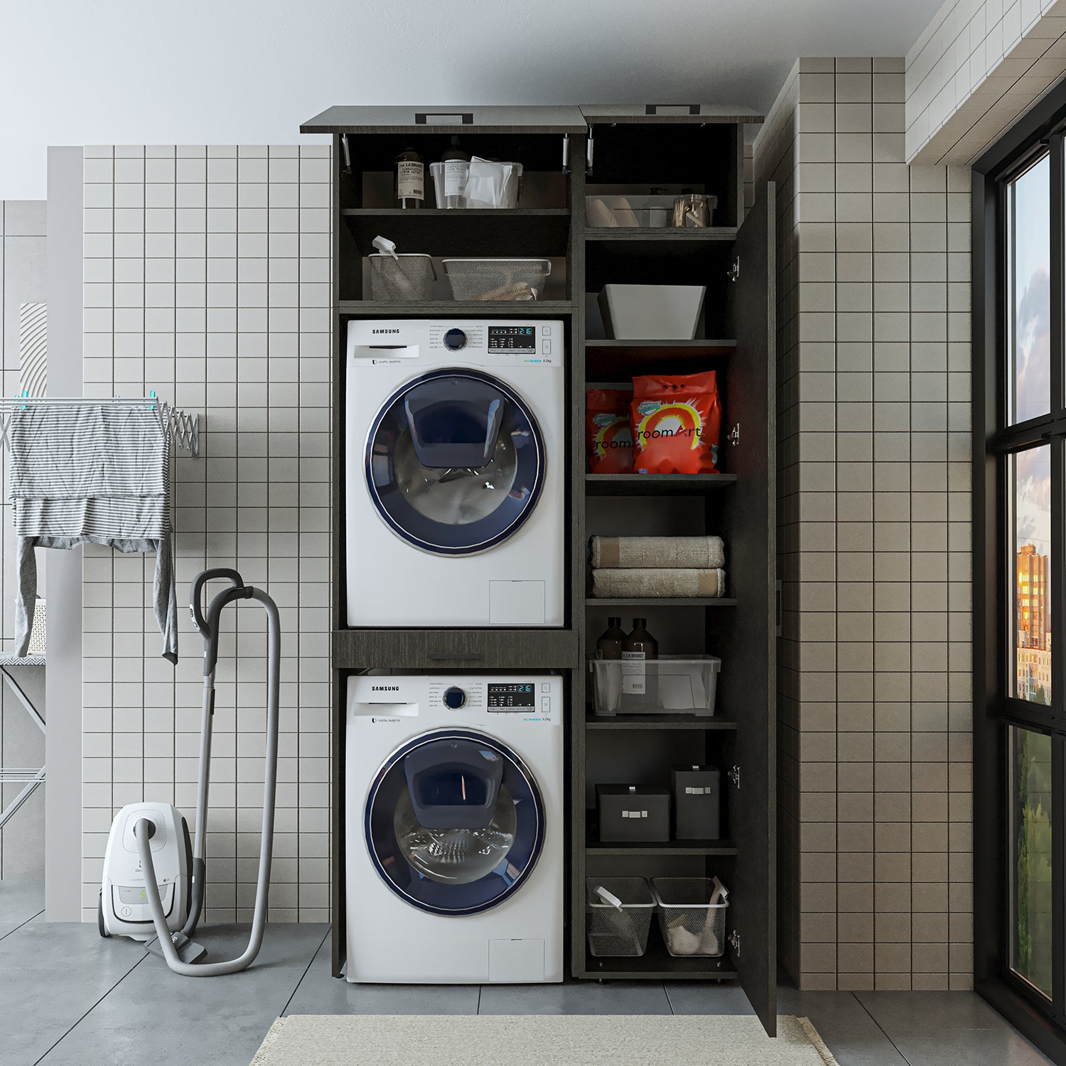 Roomart Schrankwand ist eine praktische Kombination für Ihren Waschraum.